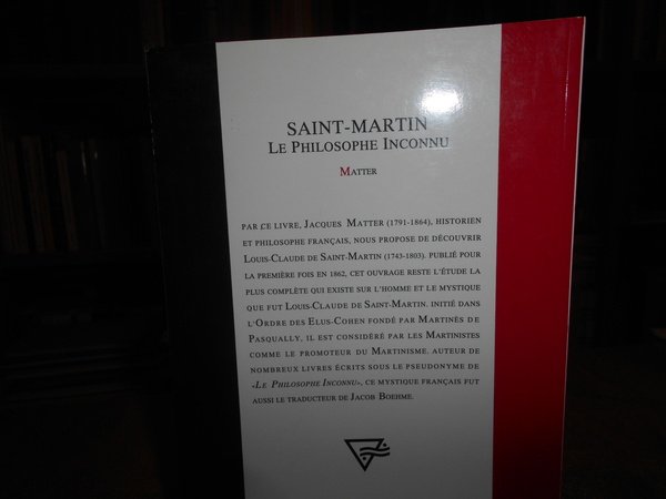 MATTER. France, Collection Martiniste, Diffusion Rosicrucienne, 1992. SAINT-MARTIN Le Philosophe Inconnu. In-8°, cartoncino edit. 429, (6) pp. Come nuovo. Uff. stanzetta.