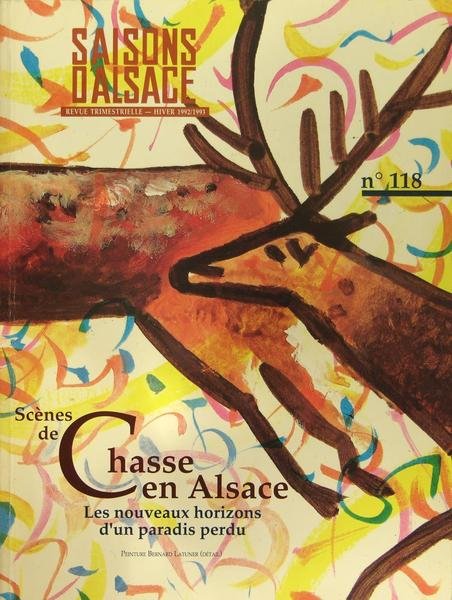 1992. In-8 (23 x 17 cm) broché, couverture illustrée (B. Latuner), illustrations en noir, 255 pages. Divers articles : portrait de groupe des chasseurs d'Alsace, entre recherche du paradis perdu et difficiles remises en cause. Un hommage à Madeleine Horst, une des grandes figures de l'Alsace contemporaine.