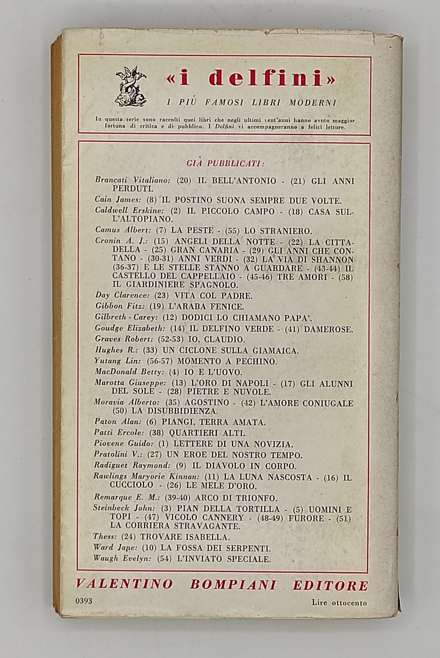 La sovracopertina mostra vari tracce d'usura, tra cui strappi sui dorsi e l'aletta frontale staccata. Tagli imbruniti dal fattore tempo. Pagine imbrunite lievemente sui bordi, ma integre e privi di macchie, strappi o sttolineature.