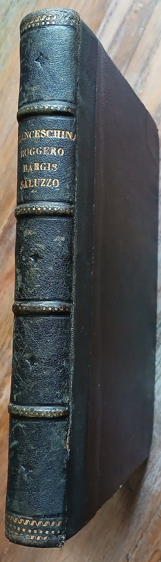 In 8°, legatura in mezza pelle nera, dorso a 4 nervi con titoli e filetti impressi in oro, pp. 321,(3). Ex libris al contropiatto anteriore. Leggere usure alla legatura, peraltro volume ben conservato. Edizione originale.