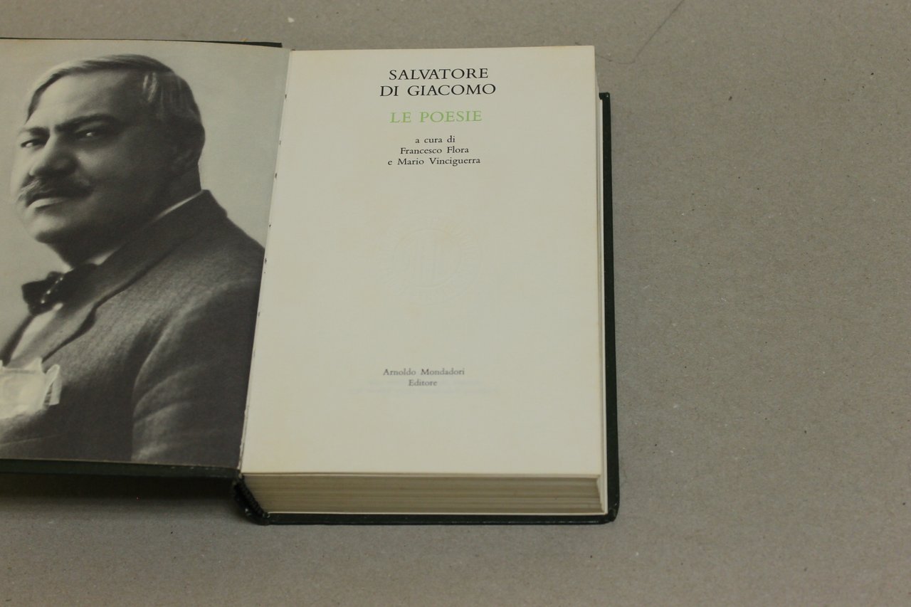 A cura di Francesco Flora e Mario Vinciguerra Salvatore Di Giacomo. Le poesie. Milano, Mondadori 1975, V italiano, 20 13 pp. 493 Legatura in similpelle editoriale. Con ritratto in antiporta, 8 tavv. a colori e glossario.