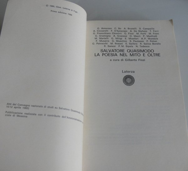 Titolo: Salvatore Quasimodo: la poesia nel mito e oltre. Atti del Convegno nazionale di studi su Salvatore Quasimodo tenutosi a Messina, 10-12 aprile 1985