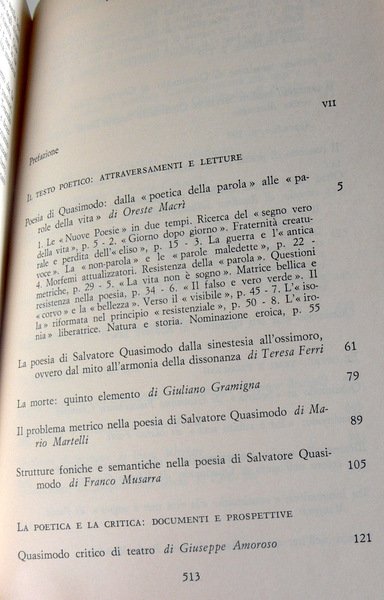 L'opera e la poetica di Salvatore Quasimodo, indagata per la prima volta in maniera così approfondita e articolata dai maggiori critici e interpreti della sua poesia.