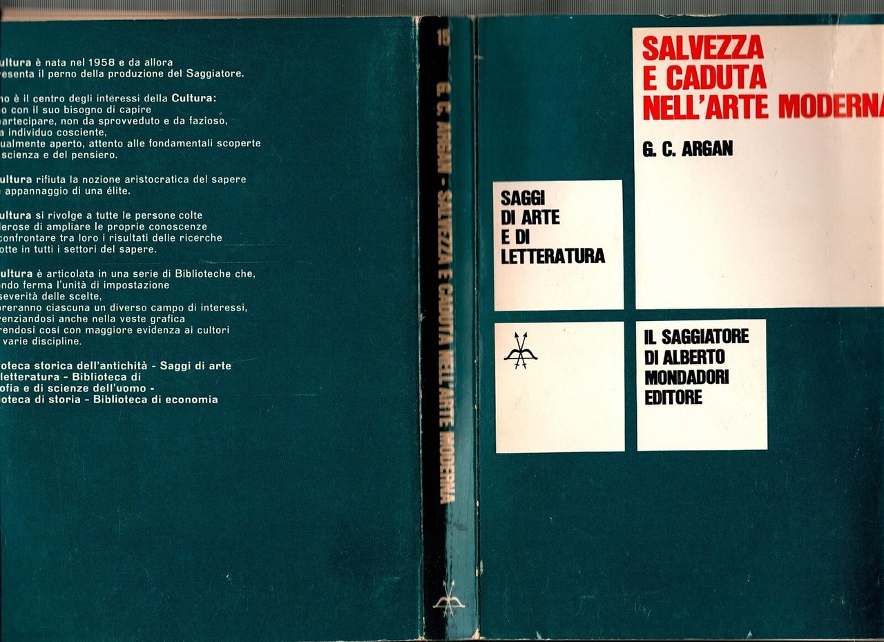 SALVEZZA E CADUTA NELL'ARTE MODERNA Studi e note II di Giulio Carlo Argan. Il Saggiatore Editore, saggi di arte e letteratura, 1968. 320 pagine. Copertina editoriale in brossura. Stato di conservazione: molto buono (pagine normalmente ingiallite, piccola ammaccatura al piatto anteriore) Salvezza e caduta nell’arte moderna. Studi e note II è una raccolta di saggi in cui Giulio Carlo Argan, uno dei più importanti storici e critici d’arte italiani del Novecento, affronta il tema centrale della modernità artistica: il rapporto dialettico tra la tensione verso la salvezza (intesa come ricerca di senso, ordine, redenzione) e la realtà della caduta (disillusione, crisi, perdita di valori tradizionali).