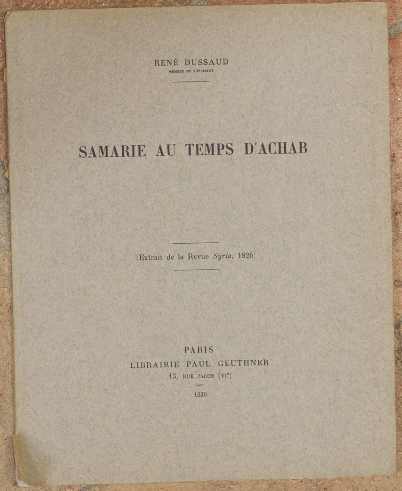 SAMARIE AU TEMPS D'ACHAB (Extrait de la Revue Syria 1926)