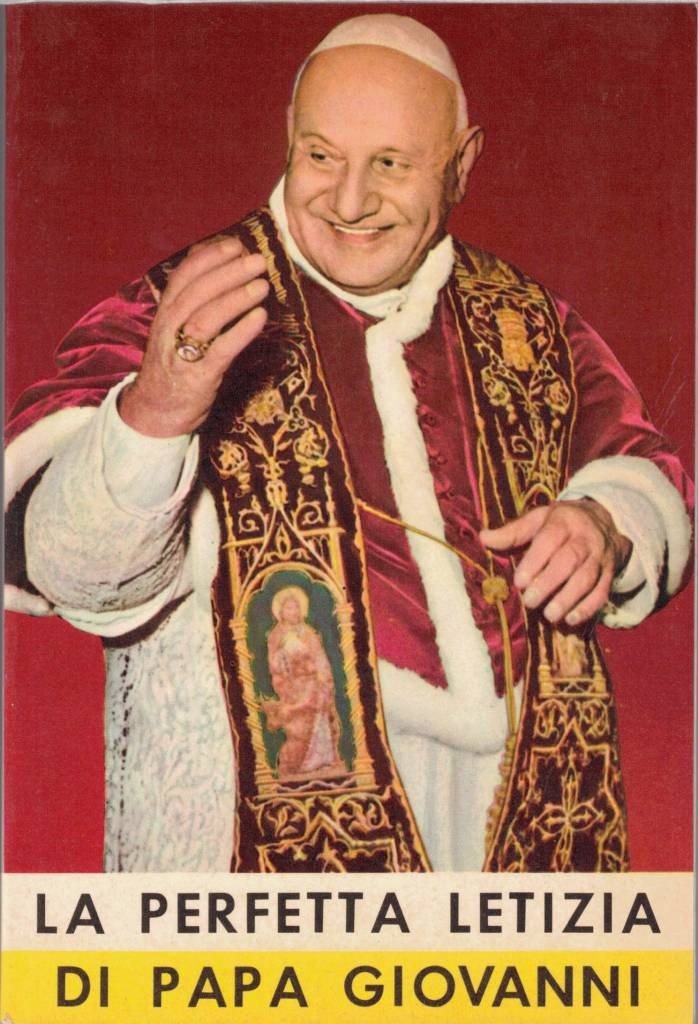 Virgilio Sambuco, La 'perfetta letizia' di Papa Giovanni, Edizioni Frate Indovino, Perugia 1967, pp. 281, ill. b.n., cm 19, br. ed. Lievi tracce d'uso alla brossura, ma per il resto esemplare fresco e ben conservato.