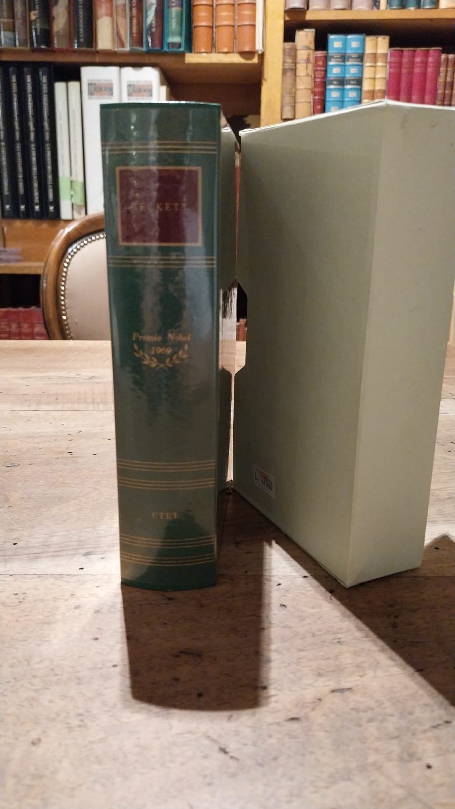 Volume della collezione UTET 1993 SCRITTORI DEL MONDO: I NOBEL. Raccoglieopere di prosa, teatro e poesia dell'autore. Presenta il ritratto di Beckett in antiporta. Il libro è rivestito da una protezione in plastica ed è accompagnato dall’apposito cofanetto. Legatura in similpelle, con titolo in oro al dorso, in tassello rosso.