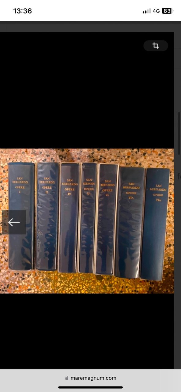 Vol. I Trattati Vol. II Sentenze altri testi Vol. IV Sermoni diversi e vari Vol. V1/V2 (due tomi) Sermoni sul cantico dei cantici Vol. VI1/VI2 (due tomi) Lettere Manca il Vol. III Sermoni per l'anno liturgico I° edizione Testo latino a fronte Tutti i volumi sono in ottimo stato