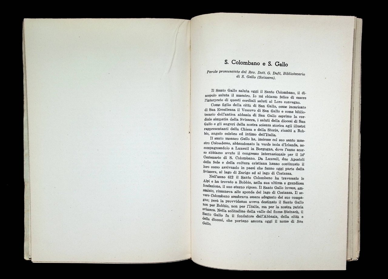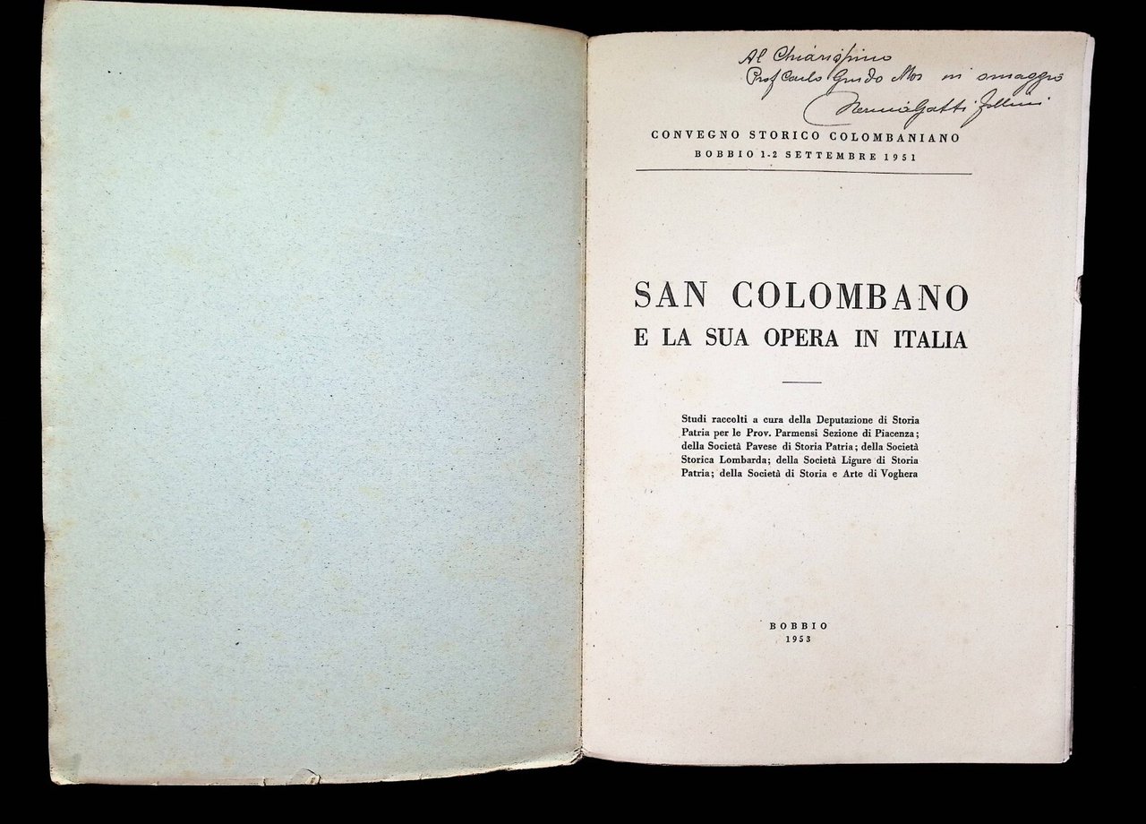 San Colombano e la sua opera in Italia Libo Atti Convegno 1951 Bobbio con Dedica