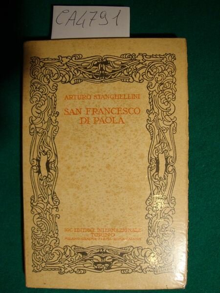 (Collana : Le vite dei Santi narrate ai giovani) Volume pubblicato all'interno della collana - Le vite dei Santi narrate ai giovani - , collezione diretta da Gius. Fanciulli. Riproduzione di un ritratto di S. Francesco di Paola in b.n. f.t. Esemplare raro da reperire sul mercato antiquario - DETTAGLIO DELLE CONDIZIONI : Minute fioriture in coperta e sparsi alle pagine che non ledono tuttavia la leggibilità del testo - .