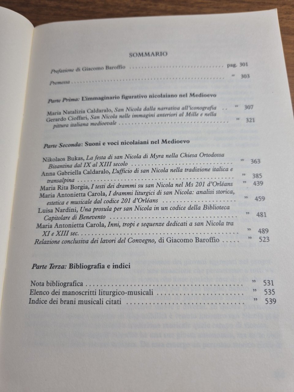 SAN NICOLA NELLA MUSICA LITURGICA E NELL'ARTE MEDIOEVALE TRA ORIENTE E OCCIDENTE atti del convegno di studi. Noci, abbazia madonna della Scala 3-4 settembre 1994. A cura di Maria Antonietta Carola.