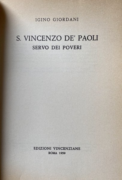 SAN S. VINCENZO DE' PAOLI SERVO DEI POVERI