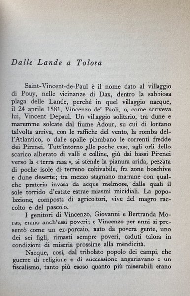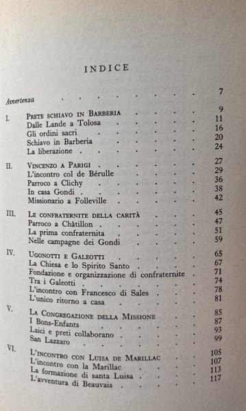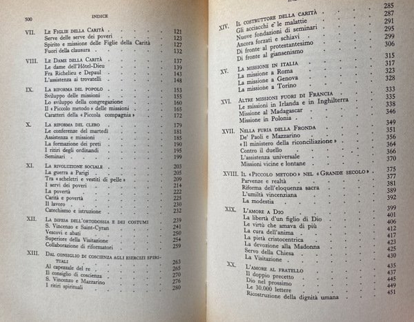 Soggetti: Religione, Biografie, Memorie, Agiografie, Santi, Beati, Lettere, Epistolario, Corrispondenza, Documenti, Interviste, Cattolicesimo, Cristianesimo, Figure religiose, Spiritualità, Cinquecento, Seicento, Vincentius a Paulo, Santo, 1581-1660, Biografia, Fondo Fratelli delle Scuole Cristiane, St. Vincent de Paul servant of the poor, El siervo de los pobres San Vincente de Paul, Movimento dei Focolari, Chiara Lubich, Missionari, Missione, Pierre Coste, Discorsi spirituali, Entretiens spirituels, Correspondance, entretiens, documents, Barberia, Concilio di Trento, Signor Vincenzo, Père, Notre-Seigneur, Nouvelles, Dieu, Charité, Louise de Marillac, Serviteur, Servitù, Povertà, Poveri, Bons Enfants, Congregazioni, Ordini religiosi, Guerre, Francia, Asburgo, Età moderna, Storia religiosa, Rinascimento, Ugonotti, Protestantesimo, Eresie, Papa, Editto di Restituzione, Inghilterra, Luteranesimo, Martin Lutero, Erasmo da Rotterdam, Depaul, Richelieu, Hotel-Dieu, Santa Luisa, Formazione, Parigi, Marsiglia, Marillac, Mendicanti di Beauvais, Confréries, Confraternite religiose, Fondazioni, Libertà, Amore, Pontefice, Mazzarino, Anna d'Austria, Olimpia Maidalchini-Pamfili, San Lazzaro, Seminari, Gonzaga, Polonia, Tolosa, Clichy, Francesco di Sales, Galeotti, Ordini sacri, Figlie della carità, Catechismo, Istruzione, Trovatelli, Assistenza, Clausura, Castità, Riforma, Clero, Piccolo metodo, Conferenze, Martedì, Preti, Ritiri spirituali, Lavoro, Saint-Cyrain, Visitazione, Superiore, Riformatori, Esercizi spirituali, Liturgia, Irlanda, Giansenismo, Roma, Torino, Madagascar, Modestia, Dignità, Valori, Virtù, Anima, Salvezza, Grazia, Pietà, Madonna, Riconciliazione, Comunione, Morte, Libri Vintage Fuori catalogo, Bibliografia, Collezionismo, Classici, Riferimento, Consultazione, Saggistica, Teologia, Lazzaristi, Società caritatevoli, Canonizzazione, Vincenzo Depaul, Dame, Federico Ozanam, Emanuele Bailly, Giovanni du Vergier, San Cirano, Antonio Arnauld, Innocenzo X, Alessandro VIII, Cardinale de Bérulle, Regola dei Missionari, Cinque pietre di Davide, Semplicità, Umiltà, Mansuetudine, Mortificazione, Zelo, Anime, Patrono, Bambini abbandonati, Orfani, Infermieri, Schiavi, Forzati, Prigionieri, 27 Settembre, Carceri, Servizio penitenziario, Presbiteri francesi, Studi vincenziani, Monsieur Vincent, Dottrina sociale, Chiesa cattolica, Margerita Naseau, Les Regles Communes, Filles de Charitè, Centro Liturgico Vincenziano, Oraisons funebre, Opere generali, La petite méthode, Iconografia, Culto, Luigi Mezzadri, Religion, Biographies, Memories, Hagiographies, Saints, Blessed, Letters, Correspondence, Documents, Interviews, Catholicism, Christianity, Religious figures, Spirituality, 16th century, 17th century, Saint, Biography, Brothers of the Christian Schools Fund, Missionaries, Mission, Speeches Spiritual, Council of Trent, Servitude, Poverty, Poor, Congregations, Religious orders, Wars, France, Habsburgs, Modern age, Religious history, Renaissance, Huguenots, Protestantism, Heresies, Pope, Edict of Restitution, England, Lutheranism, Martin Luther, Erasmus of Rotterdam, Formation, Paris, Marseille, Beggars, Religious brotherhoods, Foundations, Liberty, Love, Pontiff, Mazarin, Saint Lazarus, Seminaries, Poland, Toulouse, Holy orders, Daughters of charity, Catechism, Instruction, Assistance, Enclosure, Chastity, Reform, Clergy, Small method, Conferences, Tuesday, Priests, Spiritual retreats, Work, Visitation, Superior, Reformers, Spiritual Exercices, Liturgy, Ireland, Jansenism, Rome, Turin, Modesty, Dignity, Values, Virtue, Soul, Salvation, Grace, Piety, Reconciliation, Communion, Death, Out of print books, Bibliography, Collectibles, Classics, Reference, Consultation, Nonfiction, Theology, Lazarists, Charitable societies, Canonization, Dame, Innocent X, Alexander VIII, Cardinal, Rule of the Missionaries, Five stones of David, Simplicity, Humility, Meekness, Mortification, Zeal, Souls, Patron, Abandoned children, Orphans, Nurses, Slaves, Forced, Prisoners, Prisons, Penitentiary Service, French Presbyters, Vincentian Studies, Social Doctrine, Catholic Church, General Works, Iconography, Worship