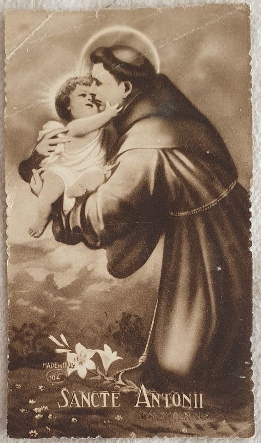 Immaginetta sacra degli anni '30 di Sant'Antonio Al verso preghiera. In ottime condizioni. In 24. Dim. cm 10x6. Holy image of 1930's of Saint Antonio. In the verso prayer In very good conditions. In 24. Dim. cm 10x6. <BR>