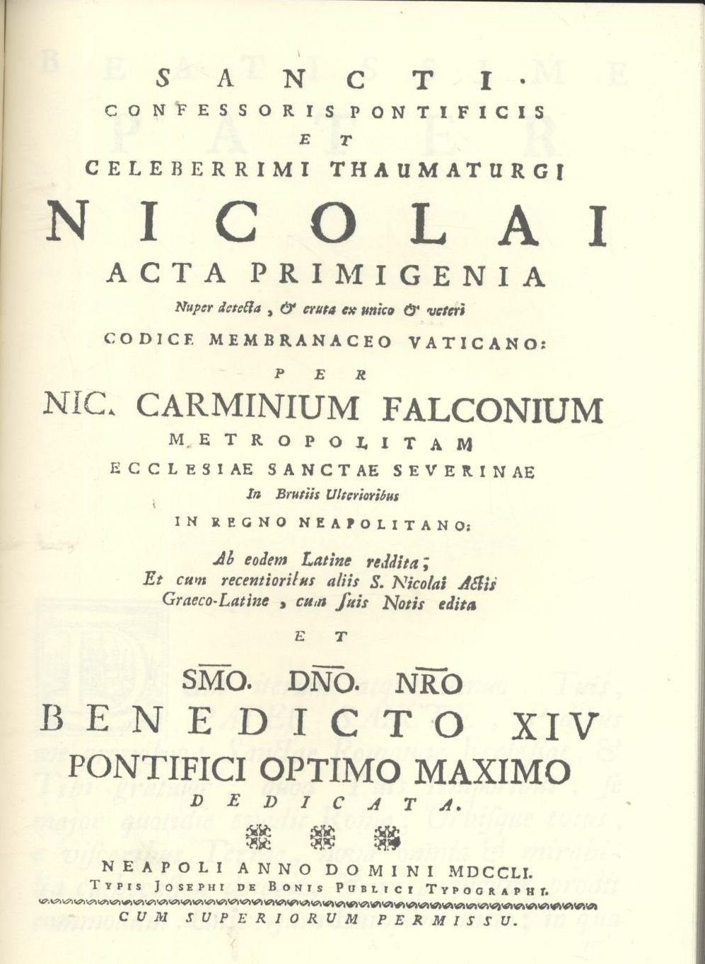 SANCTI CONFESSORIS PONTIFICIS NICOLAI ACTA PRIMIGENIA di Falcone REPRINT libro