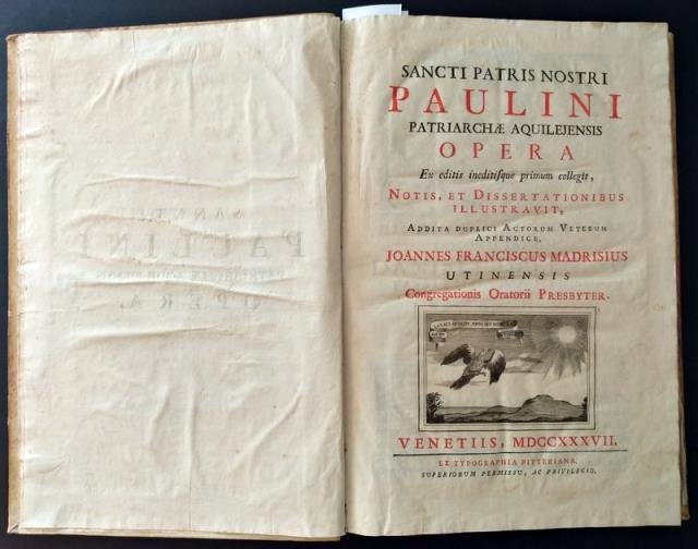 Sancti Patris Nostri Paulini Patriarchae Aquilejensis Opera. Ex editis ineditisque primum collegit, Notis et Dissertationibus Illustravit, Addita Duplici Actorum Veterum Appendice Joannes Franciscus Madrisius Utinensis Congregationis Oratorii Presbyter.