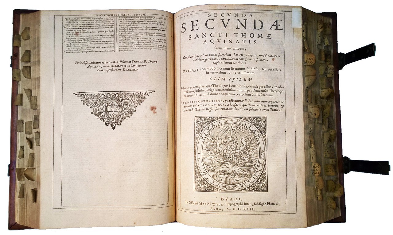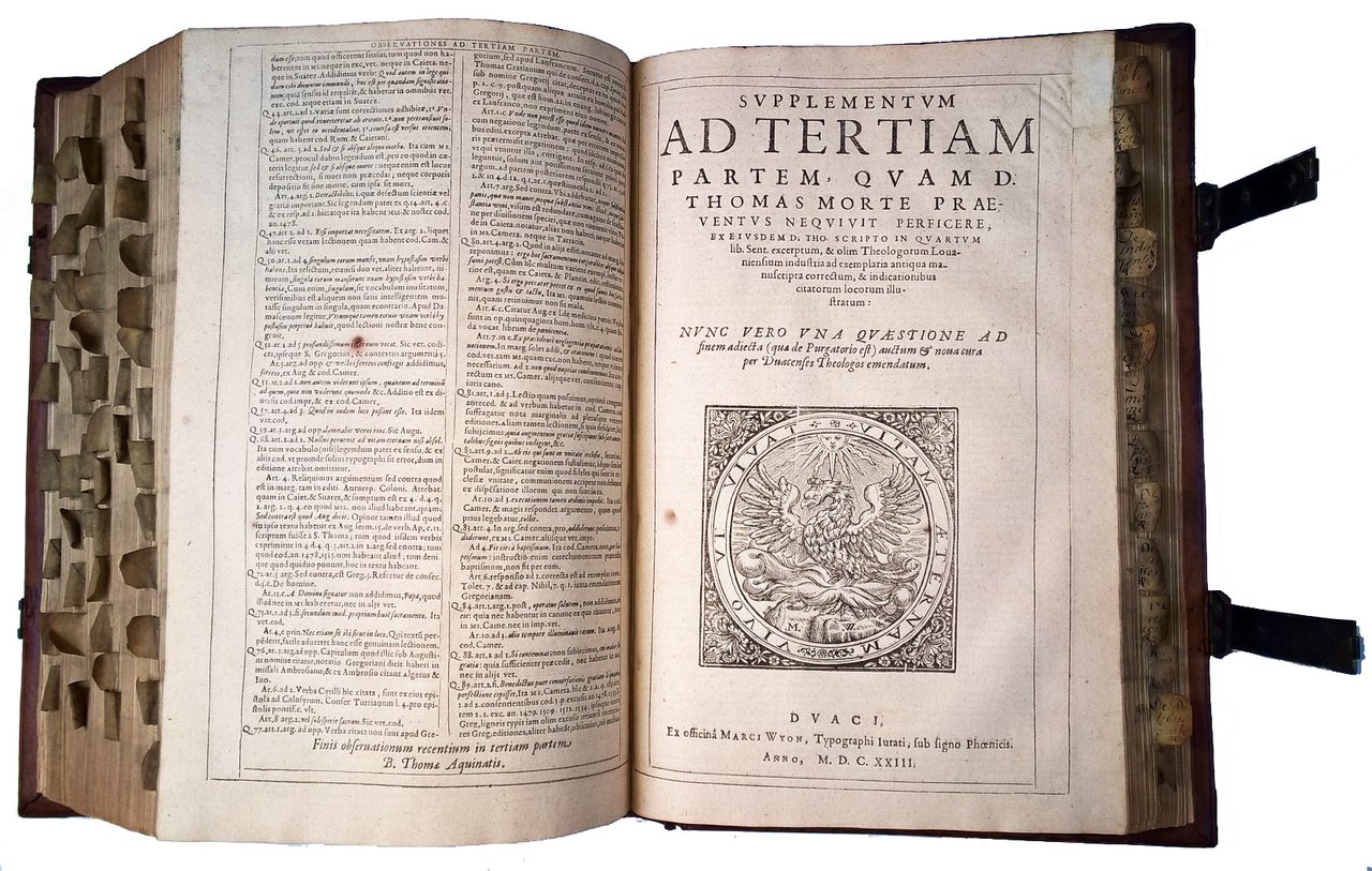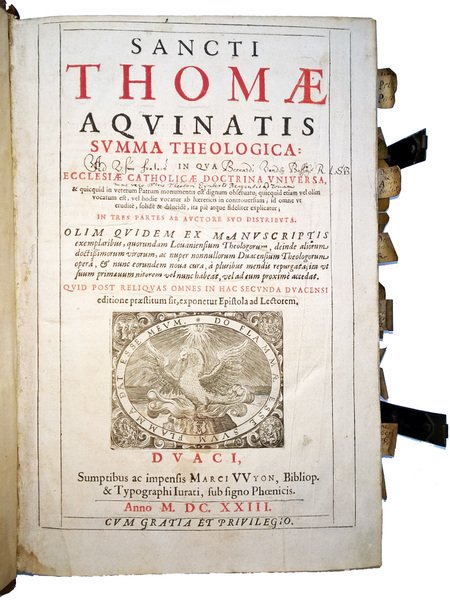 Sancti Thomae Aquinatis Summa theologica in qua Ecclesiae Catholicae doctrina vniversa, & quicquid in veterum Patrum monumentis est dignum obseruatu, quicquid etiam vel olim vocatum est, vel hodie vocatur ab haereticis in controuersiam, id omne vt erudite, solide & dilucide, ita pie atque fideliter explicatur: in tres partes ab auctore suo distributa […] secunda Duacensi editione […] [- Prima secundae partis,- Secunda secundae partis,- Tertia pars,- Supplementum ad tertiam partem].