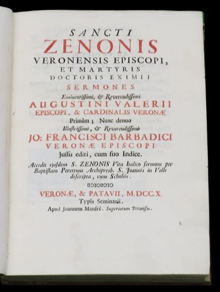 Sancti Zenonis Veronensis episcopi et martyris doctoris eximii Sermones. Eminentissimi & reverendissimi Augustini Valerii episcopi & cardinalis Veronae primu`m nunc denuo illustrissimi & reverendissimi Jo. Francisci Barbadici Veronae episcopi.