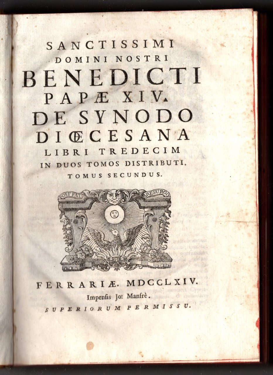 Sanctissimi Domini Nostri Benedicti Papae XIV De Synodo Diocesana - Libri tredecim in duos tomos