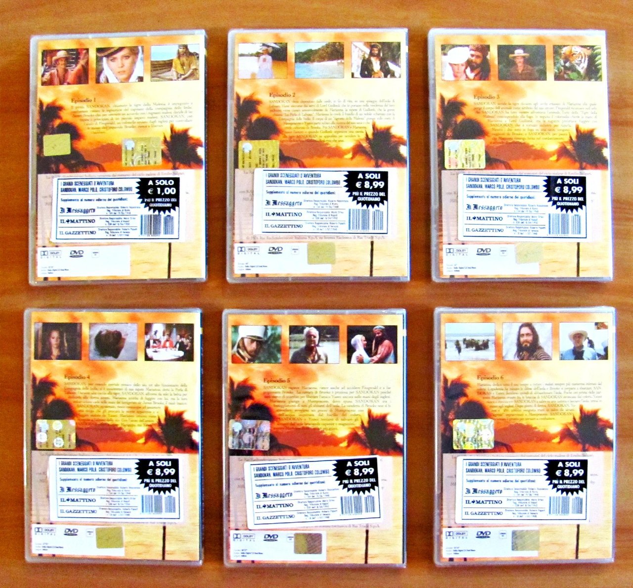 Raccolta Completa di 6 DVD. Sandokan. Episodi 1/6. Tutti blisterati e nuovi, solo l'Episodio I presenta una piccola parziale apertura del cellophane esterno. Nuovo. ,