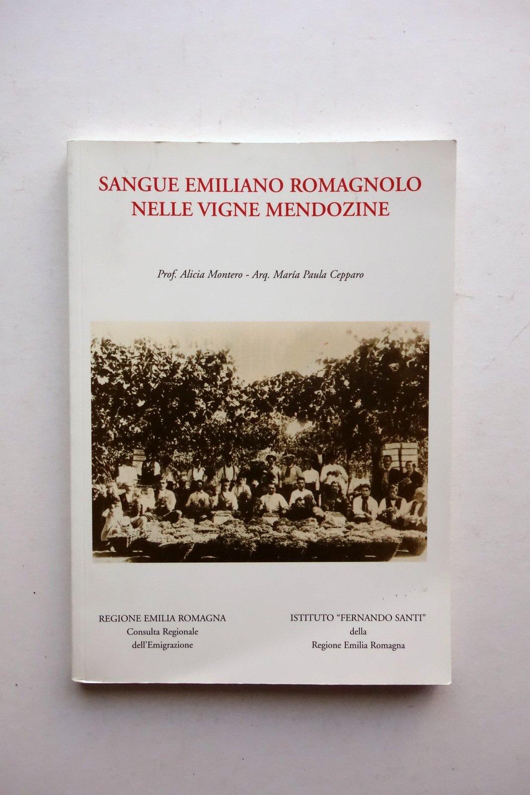Prof. Alicia Montero - Arq. Maria Paula Cepparo, Sangue emiliano romagnolo nelle vigne mendozine storie di vita Regione Emilia Romagna - Istituto Fernando Santi, 1997; cm 24x17; pp. XIV-116 con ill.; testo bilingue italiano - spagnolo. Brossura ed. Condizioni di conservazione Ottime condizioni con minime tracce d'uso; solamente margine inf. della brossura post. e di qualcuna delle ultime pagine con una minima ammaccatura. Interni ottimi. SETT82.L24705 N