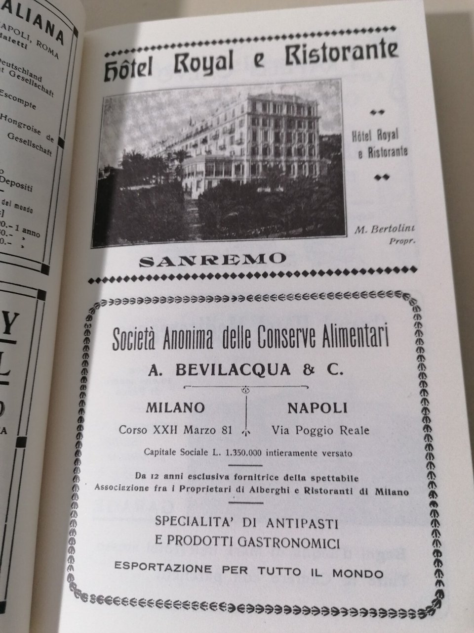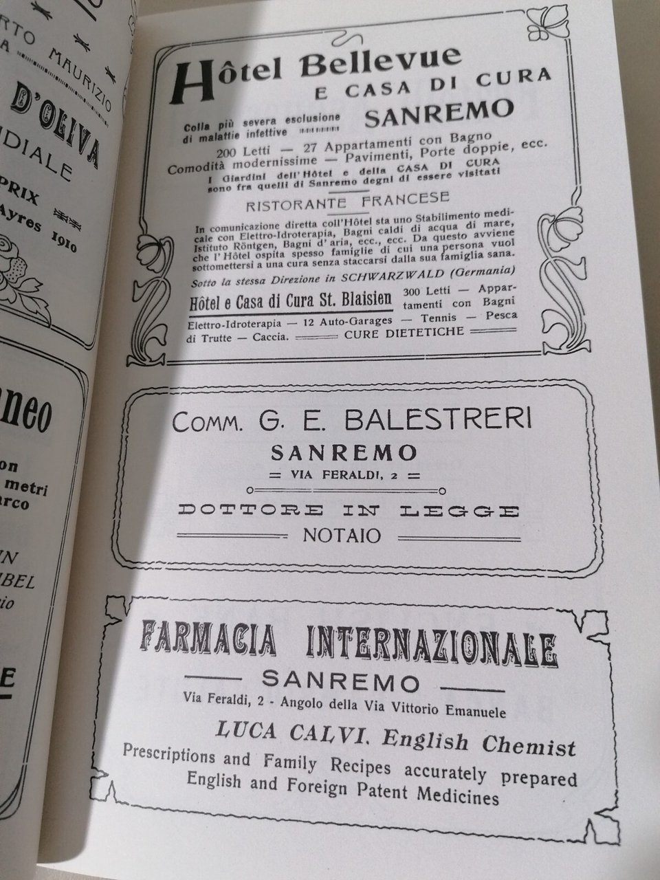 Sanremo Ai Primi Del 900 Libro Guida Turistica Pubblicità Cartina Foto d'Epoca