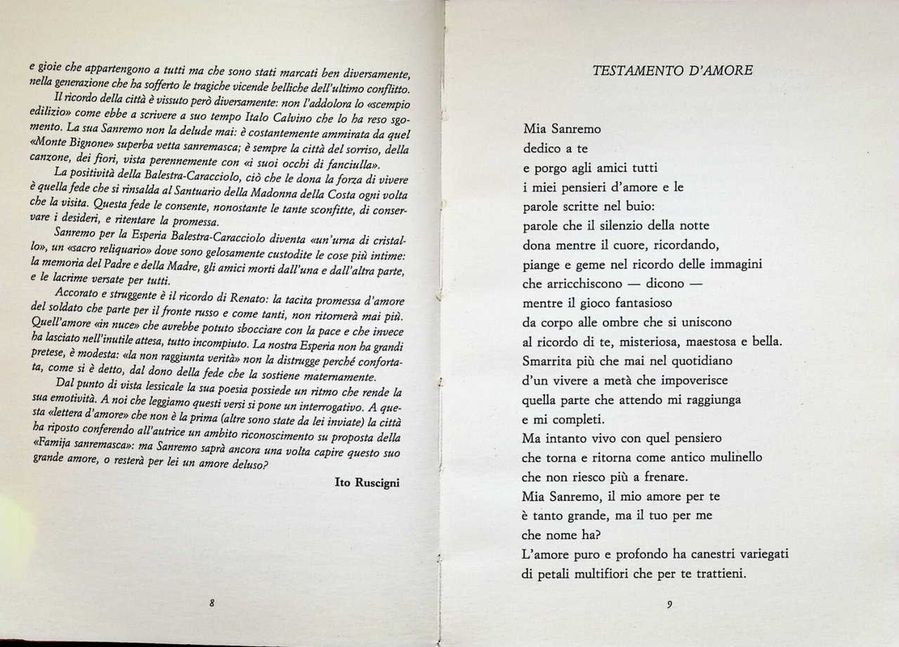Sanremo Amore Mio Libro di Poesie Esperia Balestra Caracciolo Ecig 887545213X
