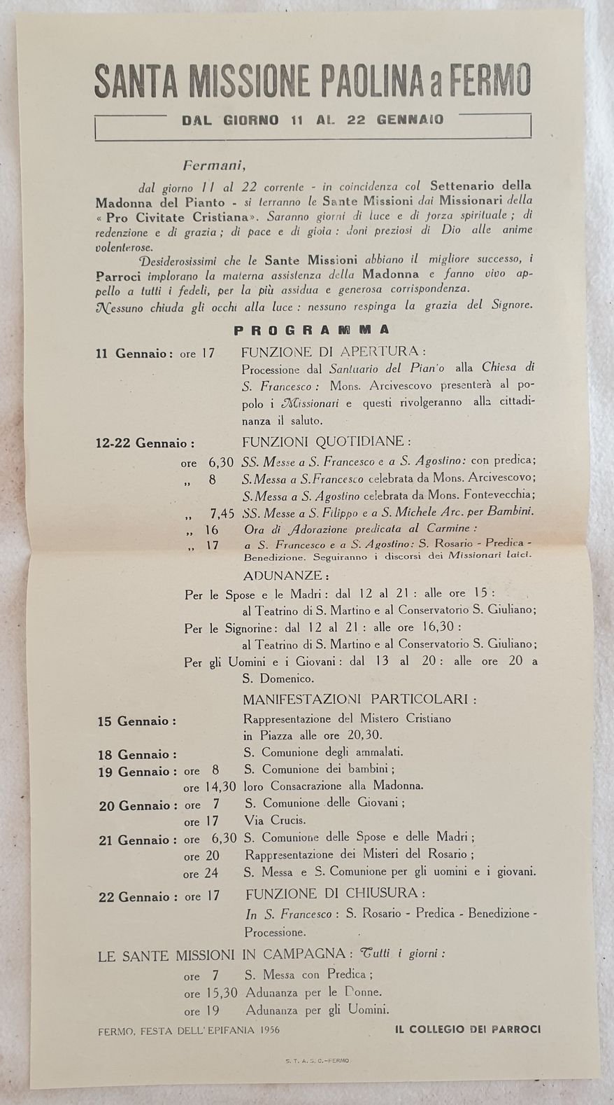 SANTA MISSIONE PAOLINA A FERMO DAL GIORNO 11 AL 22 GENNAIO 1956