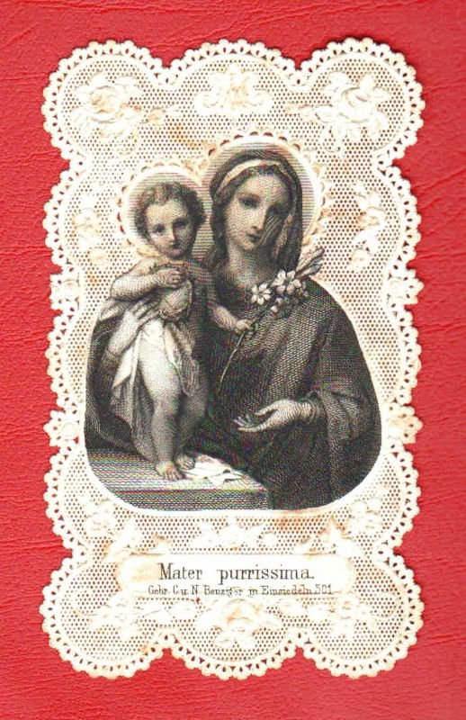 Santino trinato a fustella , incisione centrale della Vergine col bambino.