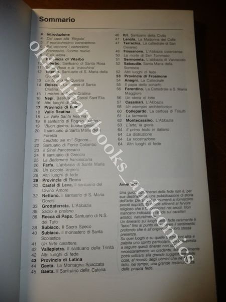 DESCRIZIONE: Istituto Geografico De Agostini Novara, 1987 br. ed. ill. pp. 64, in 8° SENZA carta geografica. Bella guida che tratta di tutti i Santuari del Lazio, ricco apparato fotografico. CONDIZIONI DELL'OGGETTO: Discrete, vol. vissuto. PESO/WEIGHT: 142 gr. without package
