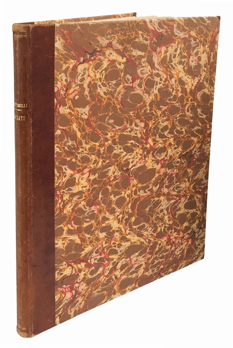 In 4to (mm 328x250); pp. [2], 149, [3], [2] c. di tav. fuori testo. Numerose illustrazioni in bianco e nero, anche a piena pagina, nel testo e due carte patinate fuori testo con foto riprodotte in bianco e nero. Lievi aloni e minime mancanze marginali. Mezza pelle con titolo in oro al dorso, piatti rivestiti con carta marmorizzata. Sono conservate le brossure originali (alla copertina posteriore incisione di Musacchio titolata "L'ordine del cinghiale"). Lievi abrasioni alle cuffie.