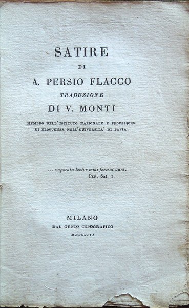 Satire di A. Persio Flacco. Traduzione di V. Monti, membro dell'Istituto Nazionale e Professore di Eloquenza nell'Università di Pavia