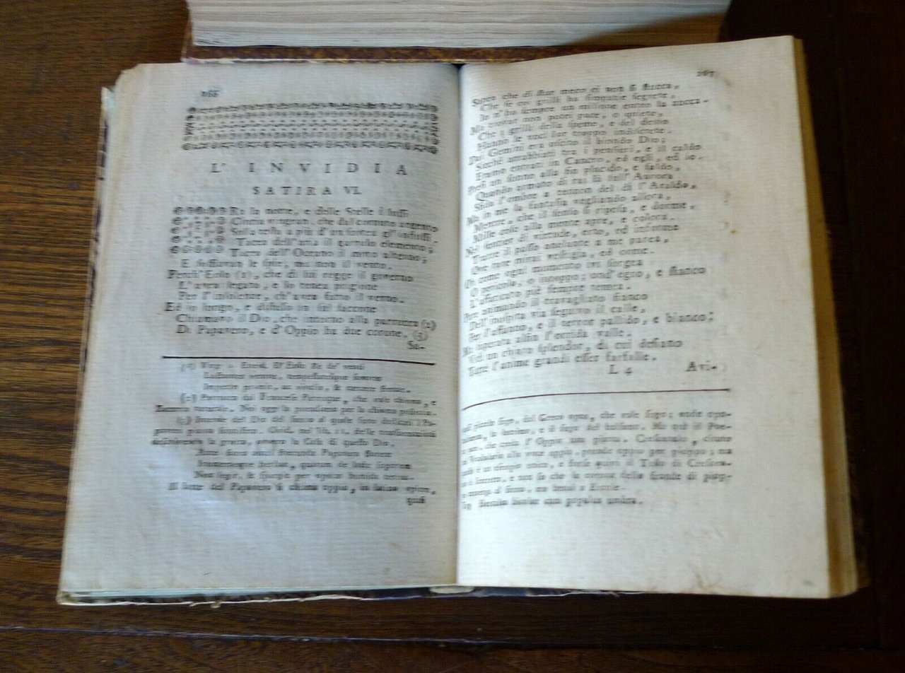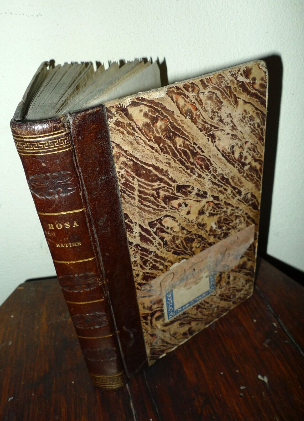 SATIRE DI SALVATOR ROSACON LE NOTE D'ANTON MARIA SALVINIED ALTRIED ALCUNE NOTIZIE APPARTENENTIALLA VITA DELL'AUTORE.AMSTERDAM MDCCLXX (1770),copertina rigida, rilegatura coeva in mezza pelle,18x11,5 cm., pp.XXIII-208,tagli a spruzzo,con un'incisione raffigurante l'Autore all'antiporta,peso: g.300