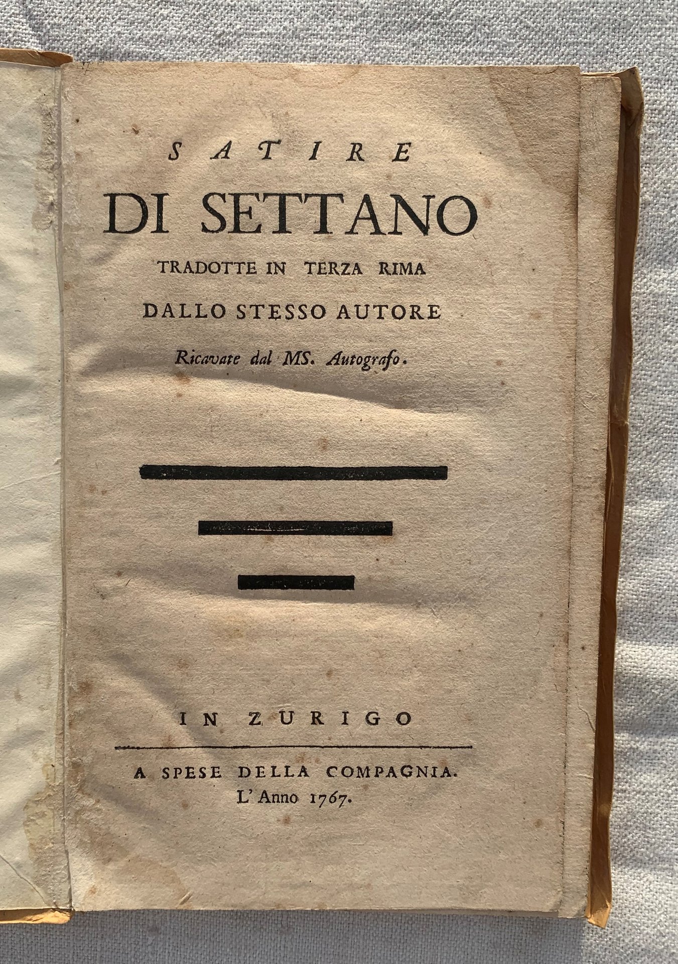 Satire di Settano tradotte in Terza Rima dallo stesso Autore. Ricavate dal MS. Autografo .