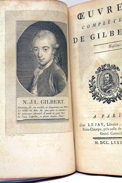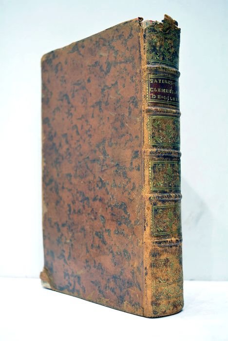 3 ouvrages en 1 volume in-8. 1). 2 feuillets. XXXVI. 175 pages. 2). Portrait. XV. 232 pages. 3). 79 pages. (20,5x13cm). Pleine basane marbrée de l'époque. Dos à nerfs orné. Pièce de titre de maroquin rouge. Tranches rouges. Reliure un peu frottés. Plats épidermés. Usures aux coins. Coiffe supérieure manquante. Coins émoussés. Quelques feuillets brunis. Rousseurs plus ou moins pronocées. Mouillure angulaire affectant les premiers feuillets du troisième ouvrage. Recueil de trois textes satiriques sous une jolie reliure de l'époque. Pièce de titre indiquant: "Satires de Clemens et de Gilbert". Assez bon exemplaire, solide, en reliure du temps.