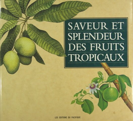 Les éditions du Pacifique, 2000. In/8 à l’italienne, cartonnage éditeur sous jaquette illustrée en couleur, illustrations couleurs : dessins et photographies en couleur, 96 p. Ananas, Avocat, banane, noix de coco, pour les plus courant ; carambole, fruit de la passion, litchi, lime, papaye, ramboutan ou plus mystérieux : orange de Malabar, sapotille, salak, lanse, corrosol. sont quelques un des fruits tropicaux sélectionnés, les plus beaux et plus délicieux dans ce bel album illustré de superbes dessins. Cet ouvrage est à la fois une étude botanique, scientifique et pratique, mais également un livre raffiné s’adressant aux curieux et aux voyageurs qui veulent reconnaître et accommoder les magnifiques fruits exposés sur les étals des marchés lointains .