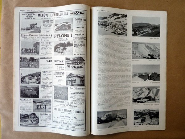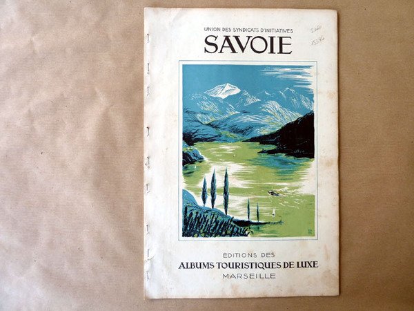 Une revue bilingue, français-anglais; de format in folio (30x44cm) de 66 pp.; une carte de la Savoie et plusieurs centaines de photographies en noir de sites remarquables. Nombreuses pages d'annonces publicitaires, de "réclames,"répertoriant tous les grands restaurants de l'époque, les "tour operator", les commerces de luxe les possiblilités sportives et tous les Syndicats d'Initiatives. Couverture en 4 couleurs de Rob D'Ac (Robert Gaston Menot). Rob D'Ac (Robert Gaston Menot), gazé pendant la guerre 14/18, s'installa à Grenoble et produisit de nombreuses affiches pour de grandes firmes; Air-France; Arthaud, Berliet, British Petroleum, Merlin-Gerin, Petit-Bateau; mais aussi pour la Ligue contre Le cancer. Il dessina également des affiches touristiques de 1932 à 1938 pour la Fédération des Syndicats d'Initiatives. Quelques rousseurs sur la couverture, intérieur frais. La revue est agrafée. La couverture, vue son format, pouvait servir d'affiche.