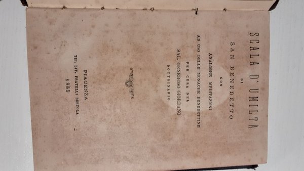 Volume in buone condizioni de "Scala d'umiltà di S.Benedetto" a cura di Generoso Giordano del 1781.