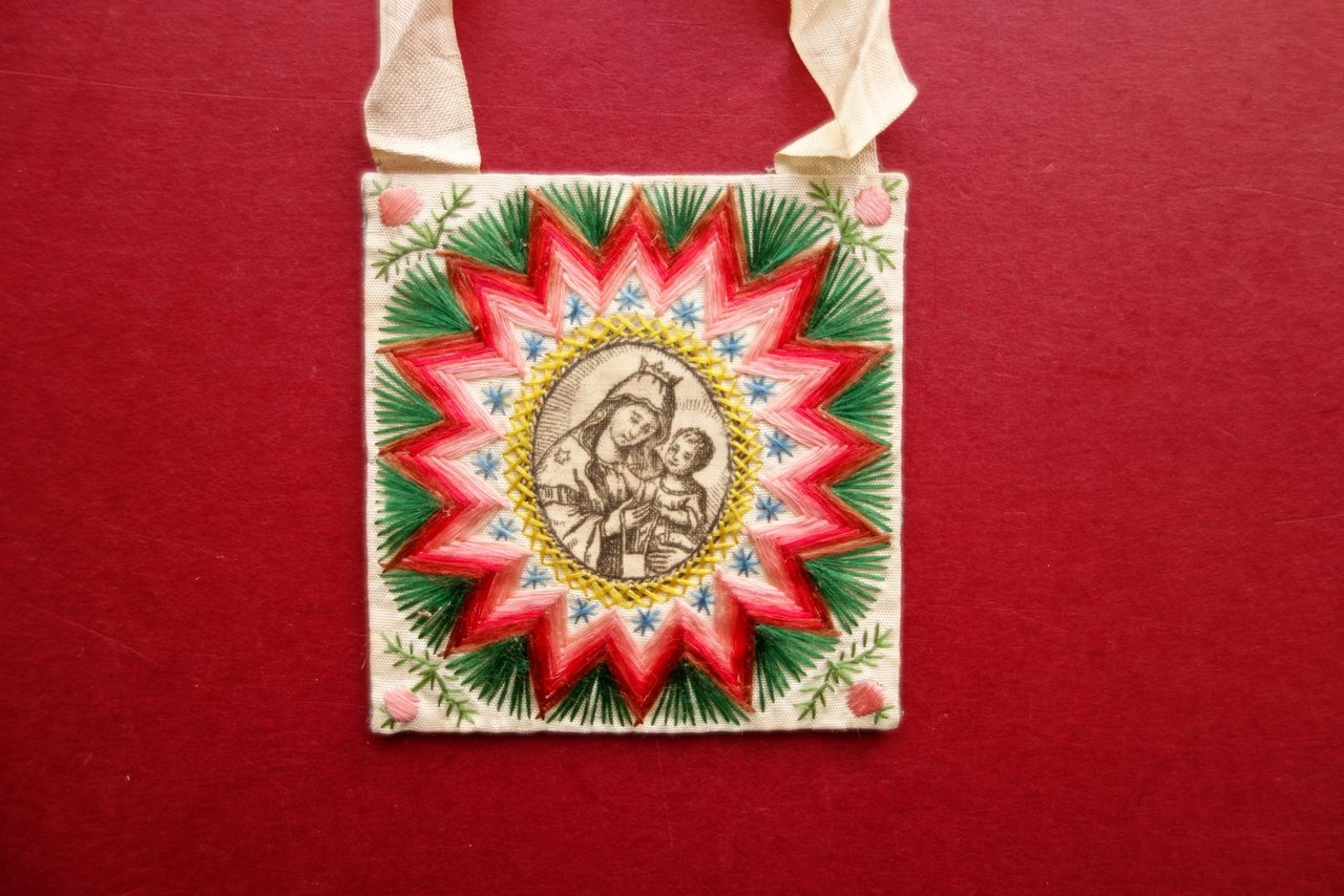 Scapolare in Stoffa Ricamato Madonna Croce Prima Met‡ dell'Ottocento