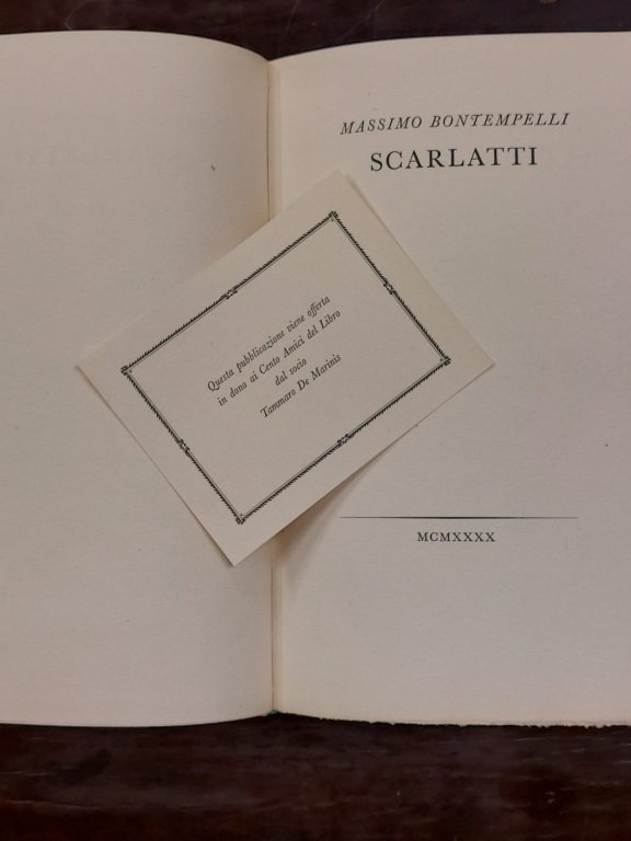 In-8° (cm. 24,5), cartonato editoriale con titolo in nero su tassello azzurro al dorso, cofanetto, pp. 29 (5). Edizione originale di Mardersteig tirata in 200 esemplari in due serie: 100 per l'autore e 100 distribuiti ai Cento Amici del Libro (il ns. con cartellino di dedica ai Cento Amici del Libro da parte del socio Tammaro De Marinis). Stampa de «il discorso tenuto il 15 settembre 1940 nella Sala del Mappamondo in Siena per l'Accademia musicale chigiana». Ottimo esemplare. (SC4)