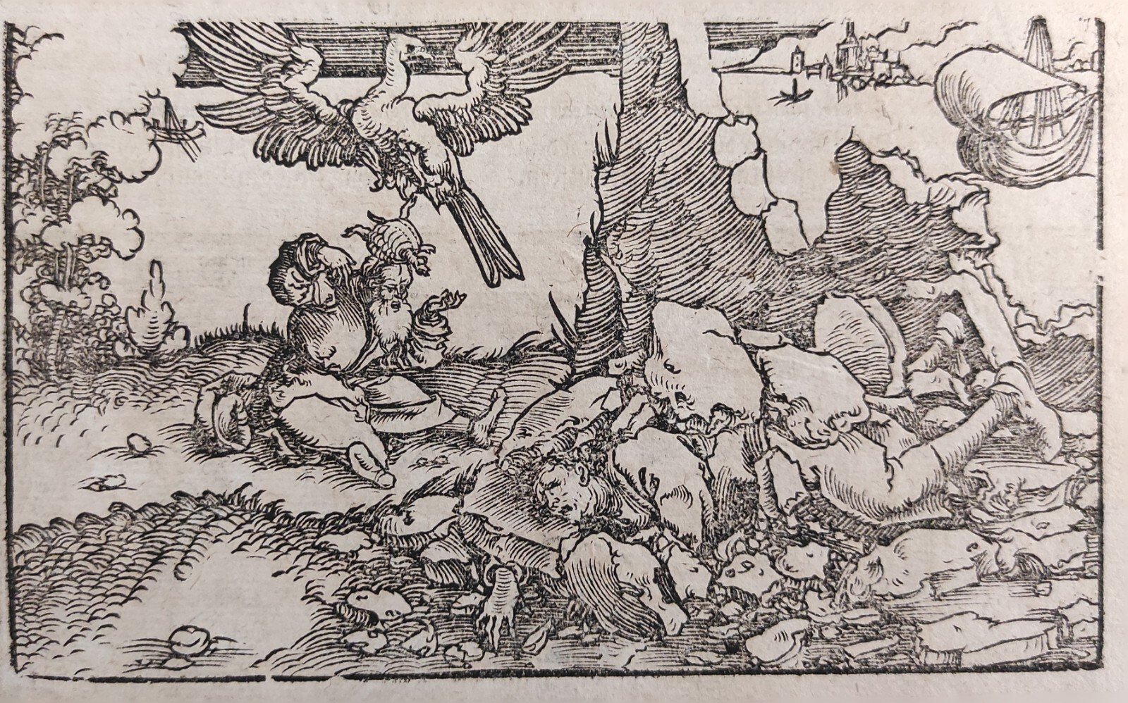 Hans Weiditz è considerato uno dei maestri della xilografia rinascimentale tedesca, insieme a Holbein, Burgkmair e naturalmente Albrecht Dürer. Viene indicato come "Il Maestro Petrarca" in ragione delle oltre 250 illustrazioni xilografiche da lui realizzate per il De Remediis Utriusque Fortunae di Petrarca.Quella qui proposta è una delle incisioni appartenenti a questa suggestiva raccolta. xilografia cm. 10 x 16 Buono (Good) Buon es..