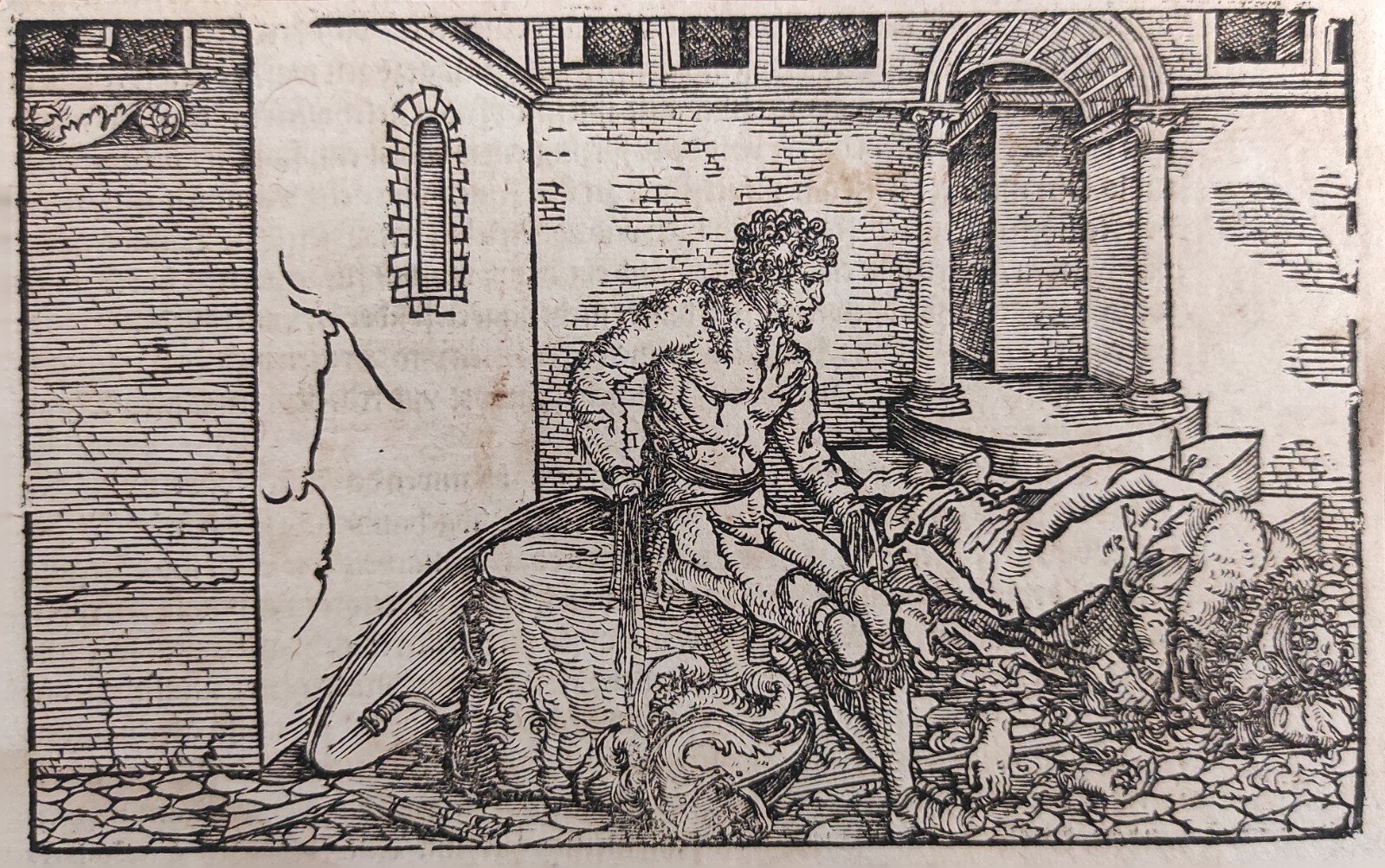 Hans Weiditz è considerato uno dei maestri della xilografia rinascimentale tedesca, insieme a Holbein, Burgkmair e naturalmente Albrecht Dürer. Viene indicato come "Il Maestro Petrarca" in ragione delle oltre 250 illustrazioni xilografiche da lui realizzate per il De Remediis Utriusque Fortunae di Petrarca.Quella qui proposta è una delle incisioni appartenenti a questa suggestiva raccolta. xilografia cm. 10,2 x 16,1 Buono (Good) Buon es., leggere macchie del tempo.