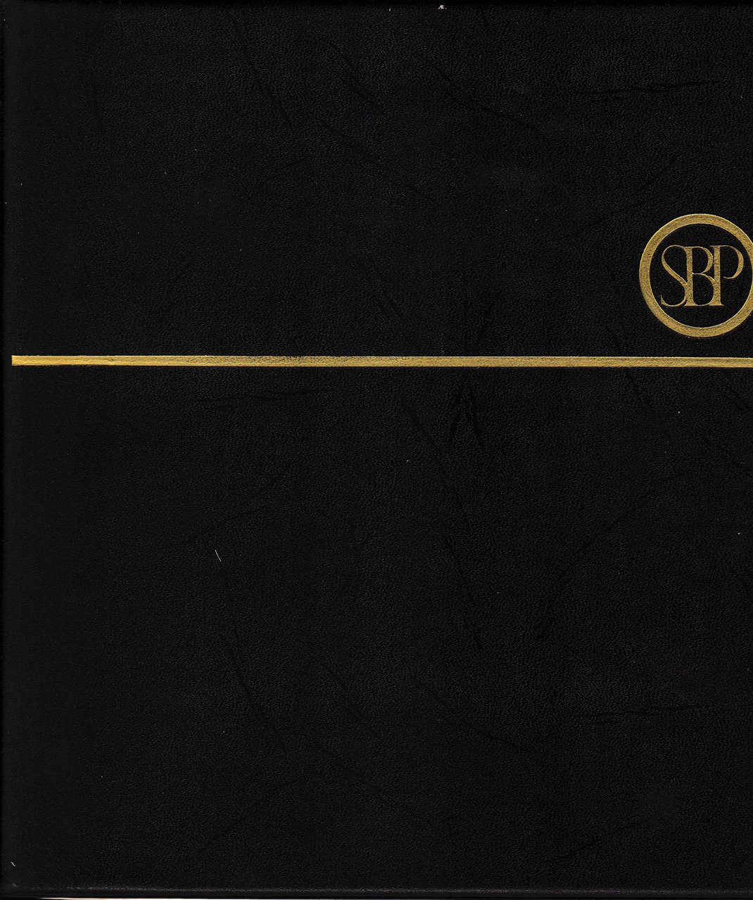 cartonati in finta pelle, ciascuno dei quali contiene un raccoglitore ad anelli con schede. Copertine dei raccoglitori in plastica con dorature ai piatti ant. e dorsi, che tengono le schede, forate alla cucitura, con anelli metallici. Tagli ingialliti in modo lieve. Pagine delle schede integre. Cofanetti che presentano segni di usura agli angoli, ma di lieve entità, eccetto il 5^ vol. il cui cofanetto presenta danni più marcati con strappi. Foto del primo vol. indicativo dello stato dell'opera. Buono (Good) .