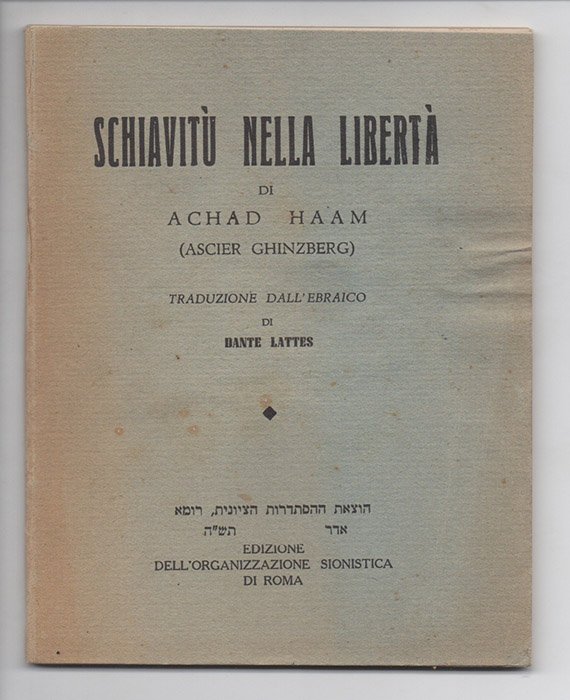 Schiavitù nella libertà. Di Achad Haam (Ascier Ghinzberg). Traduzione dall’ebraico di Dante Lattes.