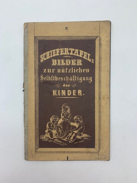 In 16 (cm 10 x 16,5), pp. (16). Brossura editoriale. Libretto per bambini costituito da 16 tavole con illustrazioni in bianco in litografia su fogli neri raffiguranti oggetti di varia natura (ombrello, candela, posate da cucina, campana, chiave, gallo e gallina, pesce, lumaca, maiale e prosciutti ecc.). Si tratta di immagini d'esempio create per la riproduzione sulla lavagnetta per il disegno autonomo dei bambini (riprodotti infatti nell'illustrazione al piatto anteriore). Alcune bibliografie riportano come la pubblicazione facesse parte di una serie di 3 edite tra il 1854 e il 1876 circa a Wesel, presso l'editore Bagel. (Cfr. "Taschenbuch der Auktionspreise alter Bucher", vol. 24, 1998, p. 1081). Le illustrazioni sono ascritte a Eduard Engelmann il cui nome pero' qui non compare mentre e' menzionato in un'altra pubblicazione analoga con titolo diverso stampata a Lipsia nel 1851.