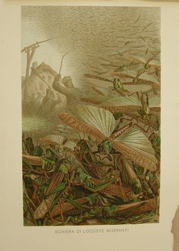 Schiera di locuste migranti. Tratto da "La vita degli animali" di A.E. Brehm. Seconda edizione sulla terza tedesca a cura del Prof. M. Lessona.
