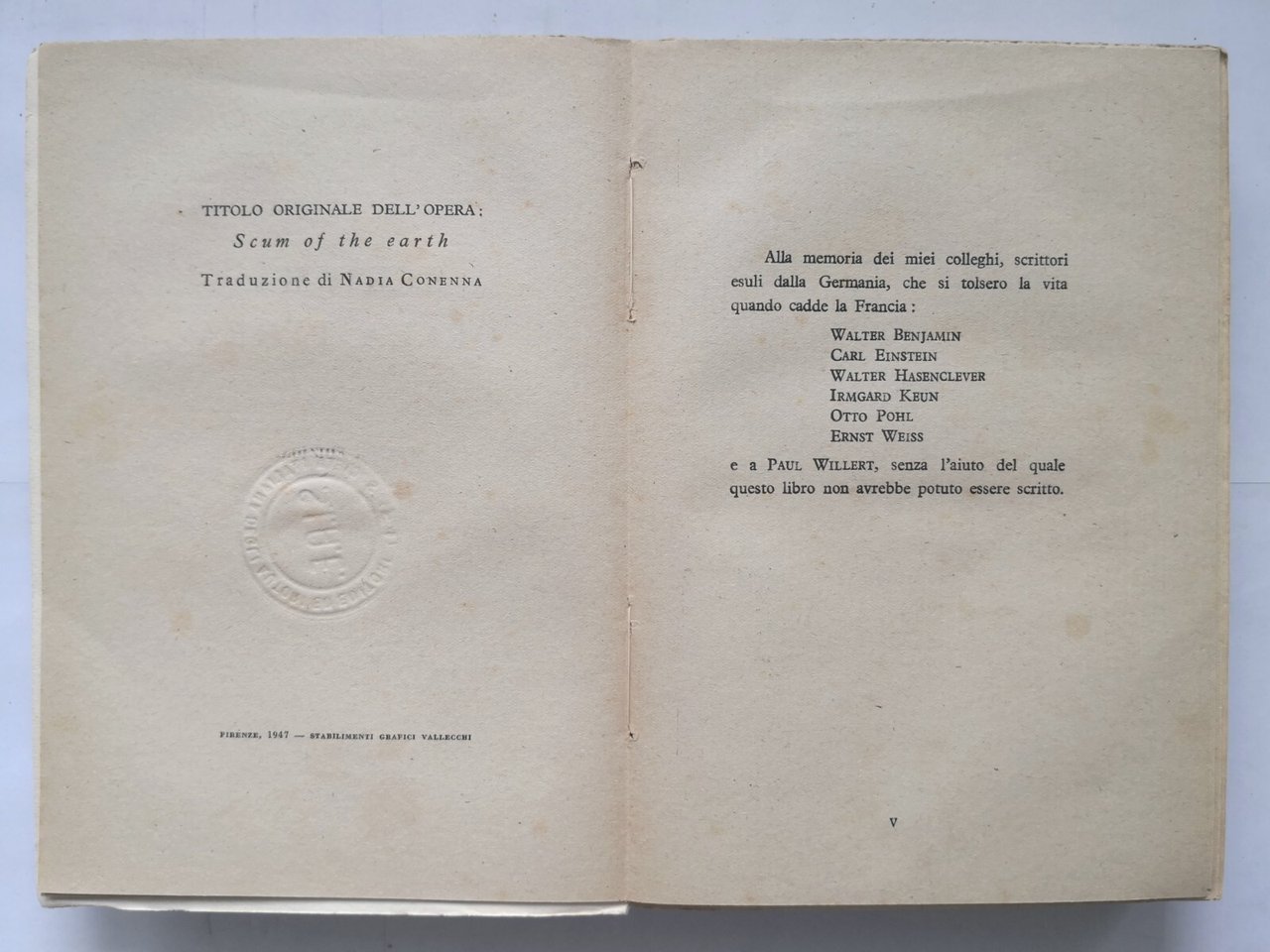 SCHIUMA DELLA TERRA di Arthur Koestler 1947 Edizioni U Libro giustizia e libertà
