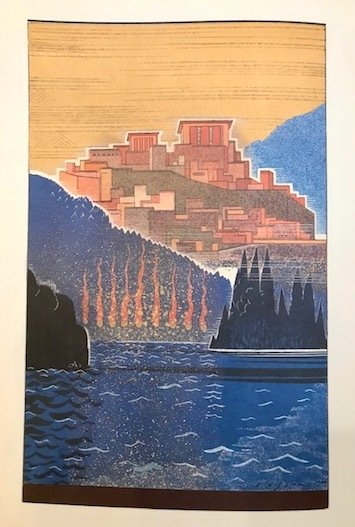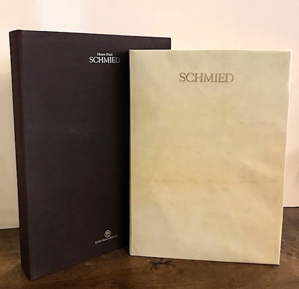 4to (cm. 34), 227(1) pp., 3 cc.nn. Bella illustrazione a colori al frontespizio e numerose altre, anche a piena pagina, nel testo. Legatura editoriale in pergamena con titolo impresso in oro al piatto anteriore. Entro cofanetto in piena tela marrone con titoli in oro. Esemplare in eccellente stato di conservazione. Prima edizione. Copia di testa non numerata, di una tiratura complessiva di 1056 esemplari, una delle 56 con una magnifica tavola originale fuori testo colorata ‘au pochoir’ da Jean Saudé, tratta dall’Odissea di Schmied pubblicata tra il 1930 ed il 1933 dalla Compagnie des bibliophiles dell’ACF. Fondamentale opera bibliografica dedicata al maestro illustratore e rilegatore Art Deco François Louis Schmied (1873-1941).