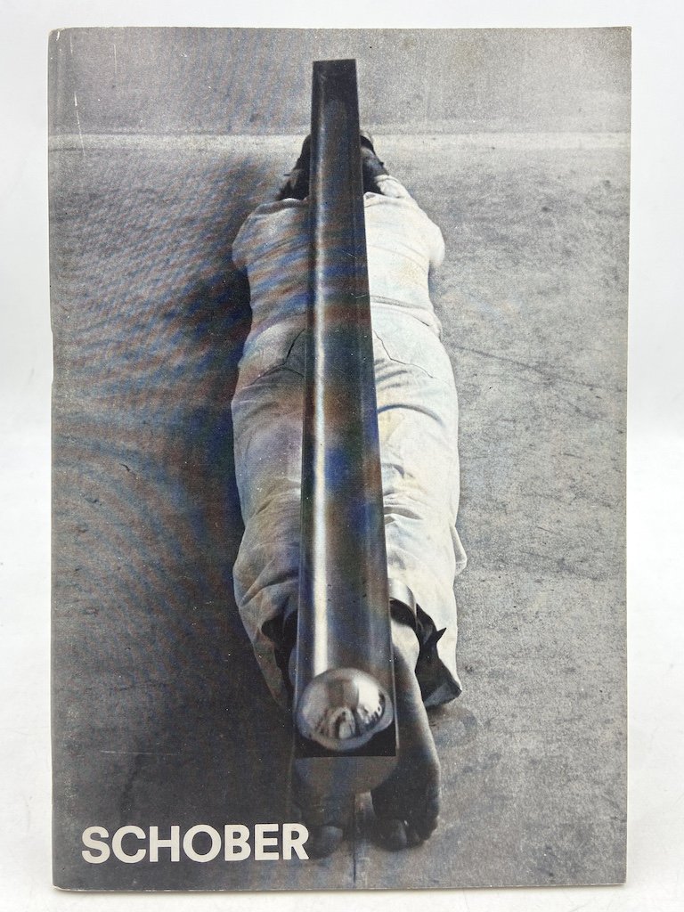 Brossura spillata, cm 23x16, pp (36) illustrate in nero + un bifolio di testo critico. Documentazione della personale di Helmut Schober (Innsbruck 1947) alla Galleria Mazzoli di Modena; i film delle azioni furono presentati alla Biennale di Venezia nel 1978 nell’ambito della rassegna Arte-Cinema. Brevi descrizioni e alcune fotografie in nero a piena pagina per le performance Concert One, The Devotion Piece, The Solipsistic Piece, The Narcisistic Piece, The Magnetic Piece, Concert Two, Casual Point. Testo critico di Gregory Battcock, in traduzione italiana su pieghevole allegato (Alla ricerca dell’inizio - La musica nell’arte - Il corpo come materiale); in calce sintetico regesto delle esposizioni e bibliografia. Fotografie di Salvatore Licitra, Sergio Pagano, Paolo Rossello.