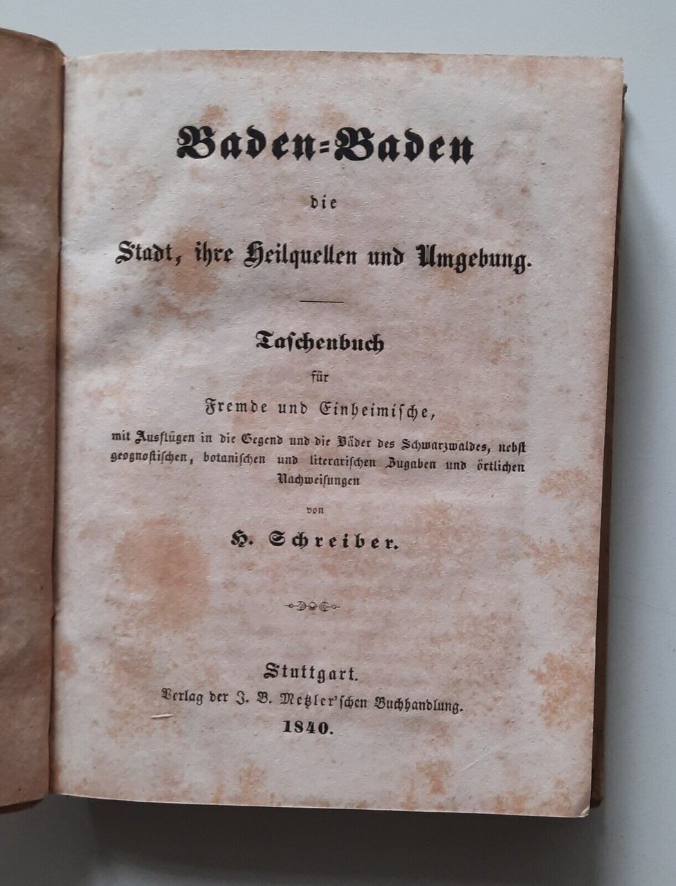 SCHREIBER BADEN BADEN STADT IHRE HEILQUELLEN UND UMGEBUNG STUTTGART 1840